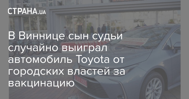 "В Виннице, путем автоматической жеребьевки, главный приз акции "Вакцинируйся. Сохрани жизнь", автомобиль Toyota Corolla, выиграл Артур Смелянец. Сын судьи Седьмого апелляционного административного суда Эдуарда Смелянца", - говорится в сообщении журналиста.