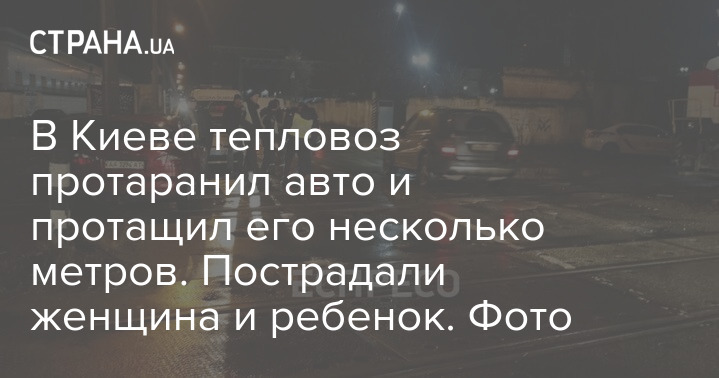 В Киеве тепловоз протаранил авто и протащил его несколько метров. Пострадали женщина и ребенок. Фото
