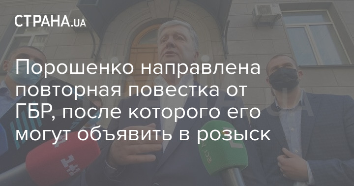 Порошенко направлена повторная повестка от ГБР, после которого его могут объявить в розыск