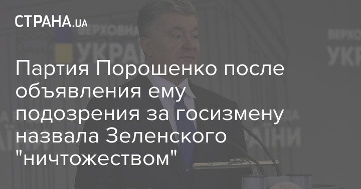 В официальном заявлении партии "Европейская солидарность" по факту объявления подозрения лидеру партии экс-президенту Украины Петру Порошенко, президента Владимира Зеленского назвали "ничтожеством".
