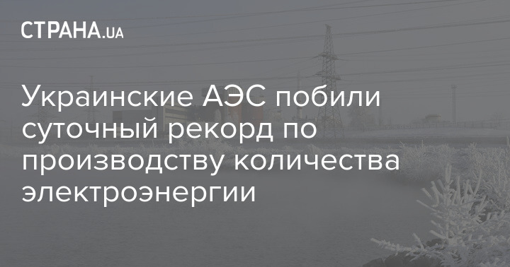 Украинские атомные электростанции (АЭС) во вторник, 21 декабря, побили суточный рекорд производства электроэнергии. По данным руководства НАЭК "Энергоатом", за сутки произведено 301,1 млн кВт-ч электроэнергии.