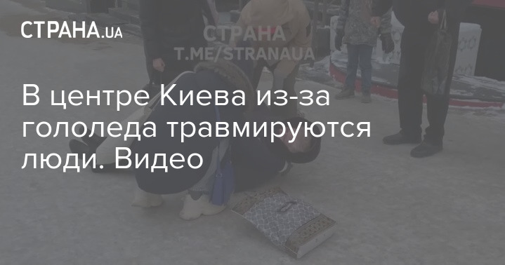 На видео, снятом корреспондентом "Страны", женщина травмировалась из-за падения на покрытом ледяной коркой тротуаре.