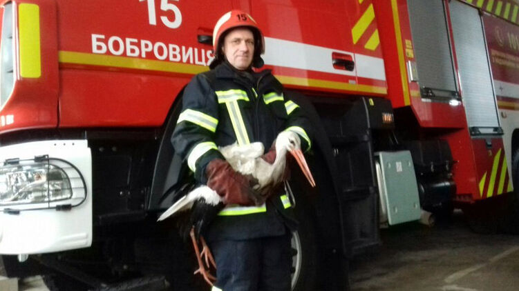 На рынок прибыли сотрудники отделения 15-й Государственной пожарно-спасательной части Главного управления ГСЧС Украины в Черниговской области. Бойцам ГСЧС удалось поймать аиста, которому не хватило сил улететь в теплые края. Чтобы спасти птицу от холода и голода, было принято решение отвезти его к себе в пожарную часть, где его накормили и обогрели.