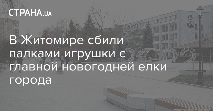 В Житомире сбили палками игрушки с главной новогодней елки города