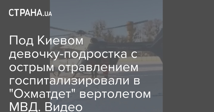 В субботу, 25 декабря, в Киевской области 17-летнюю девушку пришлось госпитализировать в "Охмадет" при помощи вертолета МВД. Об этом сообщает пресс-служба ведомства.