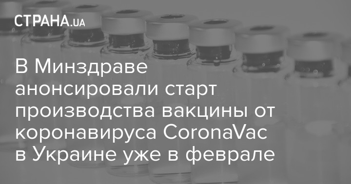 Вакцину от коронавируса CoronaVac планируют производить на территории Украины. Старт производства запланирован на февраль следующего года.
