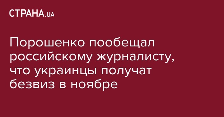 "Запишите: специально для вас, хотя я не даю комментариев российским каналам. У нас в ноябре месяце украинцы будут путешествовать без виз. И я очень желаю, чтобы когда-нибудь к россиянам также пришла эта возможность", - заявил глава государства.