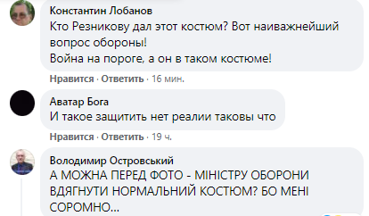 Еще один пользователь, Владимир Островский, призвал министра "надеть нормальный костюм", прежде чем фотографироваться, поскольку "ему стыдно".