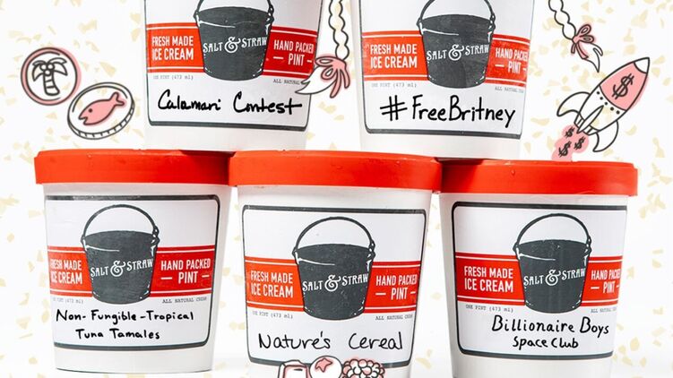 Американская компания по производству мороженого Salt & Straw создала лимитированную серию лакомства со вкусами самых обсуждаемых тем 2021 года, среди которых освобождение певицы Бритни Спирс от родительского опекунства, соревнования Илона Маска, Джеффа Безоса и Ричарда Брэнсона за первенство в космосе, сериал "Игра в кальмара".