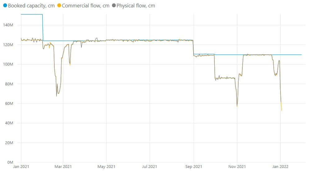 Также "Газпром" не стал заказывать дополнительную мощность для транзита газа через Украину в январе, а для транзита через Польшу забронировал на январь 19,26 млн кубов из предложенных 89,1 млн.