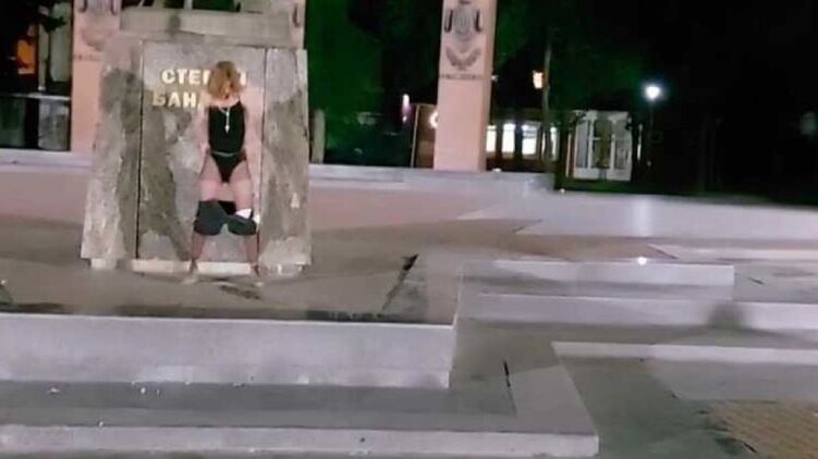 Во Львове девушка помочилась на памятник Бандере. Скриншот видео
