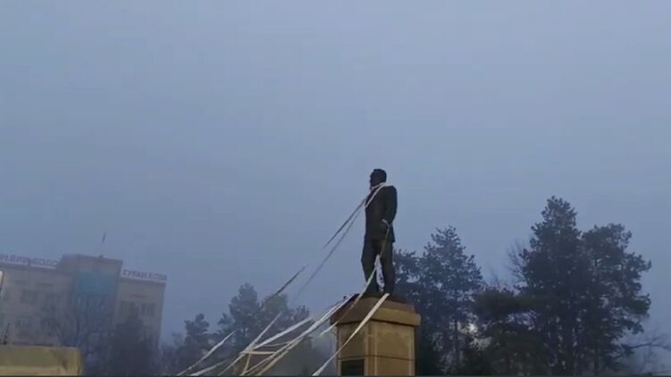 В Казахстане, где четвертый день продолжаются массовые протесты с требованием отставки правительства, снижения цен и освобождения задержанных, начался свой "Ленинопад". В городе Талдыкоргане под Алматы протестующие сносят памятник Нурсултану Назарбаеву.
