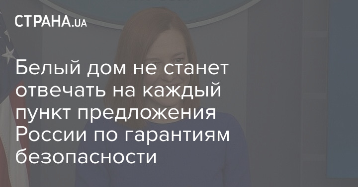 "Конечно, было несколько предложений, которые Россия уже опубликовала... Президент Байден ясно заявил, что у нас может быть прогресс по ряду пунктов (российских предложений - Ред.) по другим это недостижимо. Мы не отвечаем на них пункт за пунктом, и я не думаю, что мы будем так делать на переговорах", - заявила Псаки.