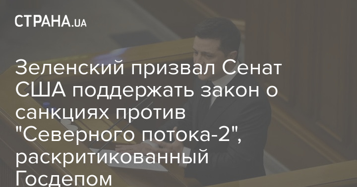 Президент Украины Владимир Зеленский призвал Сенат США поддержать закон о санкциях в отношении "Северного потока-2", за который ранее призывал не голосовать Госдеп