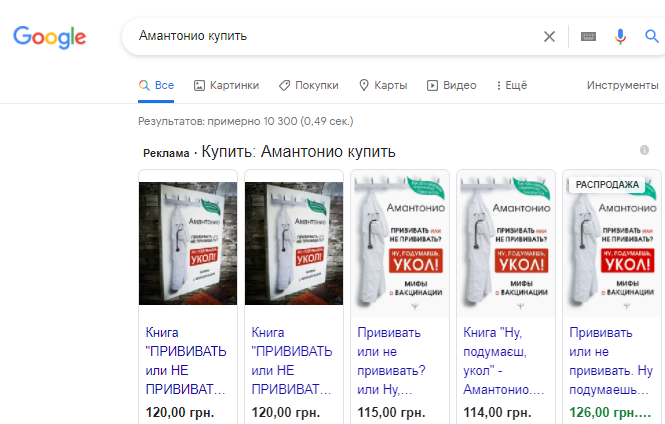 Скриншот: книга Амантонио активно продается на украинских площадках