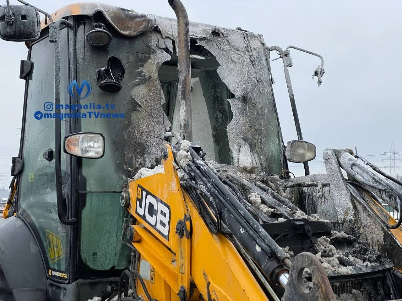 На опубликованном видео можно заметить, что в результате пожара серьезные повреждения получила кабина трактора.