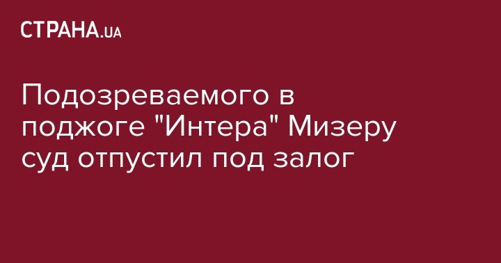 Дарницкий районный суд Киева отпустил под залог одного из подозреваемых в поджоге телеканала "Интер" Вадима Мизеру, известного по уголовной кличке "Мизер". Об этом сообщают источники "Страны" в правоохранительных органах.