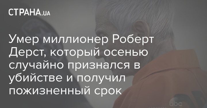 Миллионер Роберт Дерст, который осенью 2021 года случайно признался в убийстве своей знакомой, отбывал пожизненное заключение в одной из тюрем Калифорнии, где ему стало плохо. Заключенного госпитализировали в больницу, однако 78-летний Дерст не справился с недугом и скончался в госпитале.