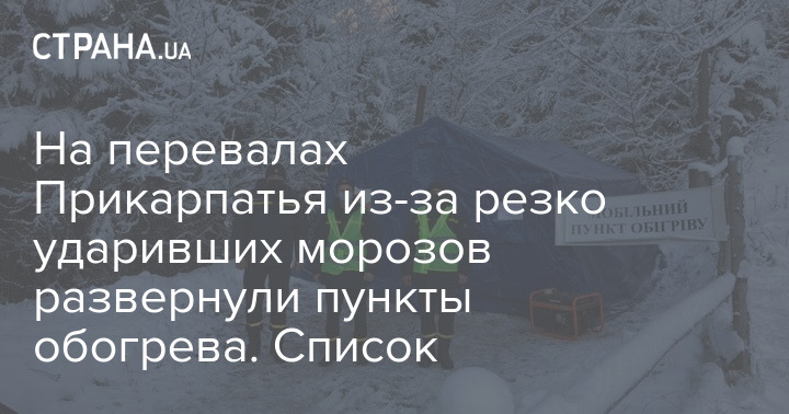 На перевалах Прикарпатья из-за резко ударивших морозов развернули пункты обогрева. Список