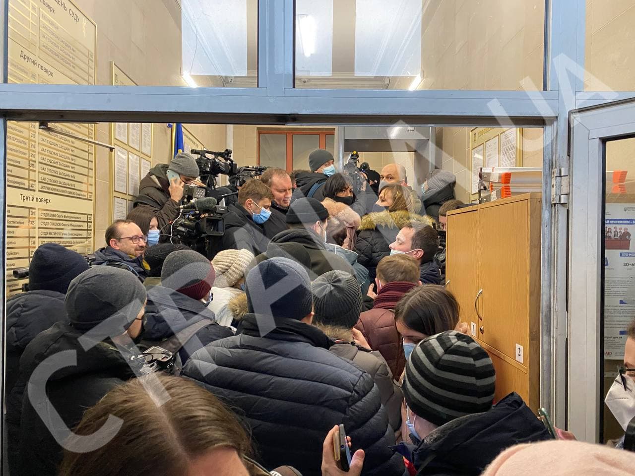 11:27 На входе в Печерский суд пробка из журналистов.