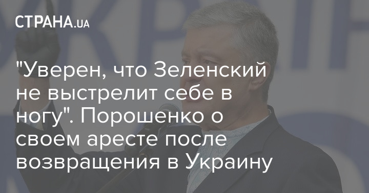 "Уверен, что Зеленский не выстрелит себе в ногу". Порошенко о своем аресте после возвращения в Украину