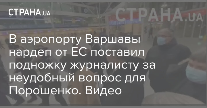 Журналисту в аэропорту Варшавы поставил подножку депутат "Евросолидарности" за "провокационный вопрос". Фото: скрин видео "Страны"