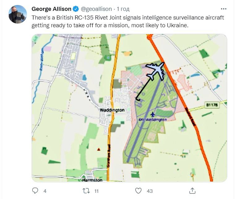 Час назад о его вылете из Британии сообщил корреспондент UK Defence journal Джордж Элисон.