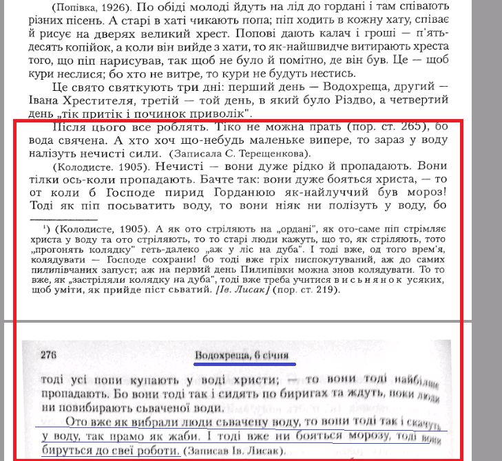 Еще один украинский историк Агатангел Крымский в своем этнографическом сборнике "Звенигородщина. Родина Шевченко с точки зрения этнографической и диалектологической" рассказывал про то, что делалось в Иорданской воде по верованиям наших предков: "Ото вже як вибрали люди сьвачену воду, то вони тоді так і скачуть у воду, так прамо як жаби. І тоді вже ни бояться морозу, тоді вони бируться до свеї роботи".