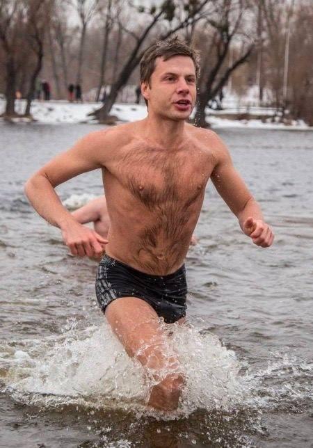 Нардеп от ОПЗЖ Илья Кива, исповедующий православие и пропагандирующий здоровый образ жизни, нырнул в воду ночью со словами "Во имя нашего Иисуса Христа и во спасение нашей грешной души".