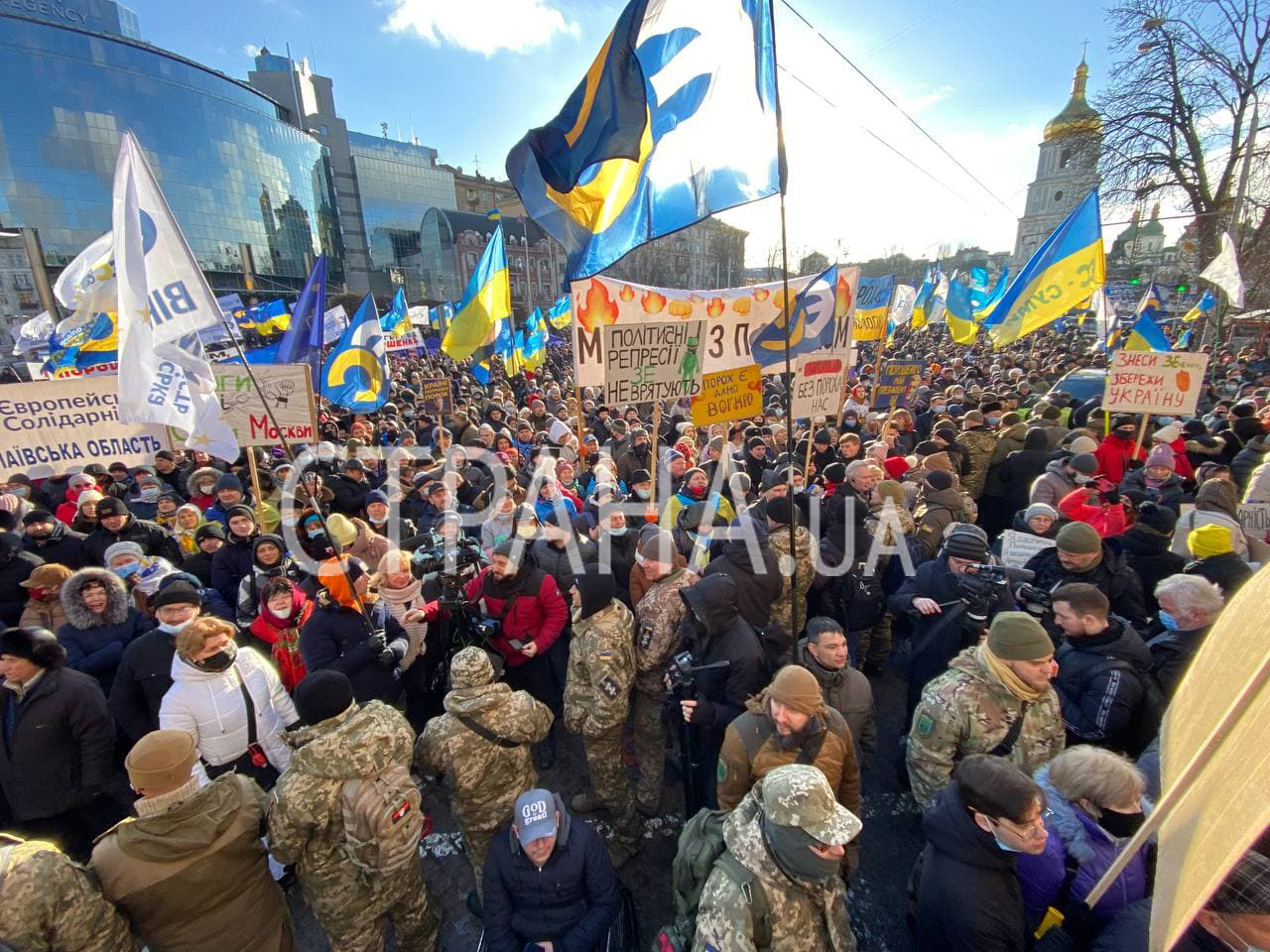 После того как вышел Порошенко и выступил на митинге, начали формировать колонну для похода на Банковую - так сказать, закрепить успех.