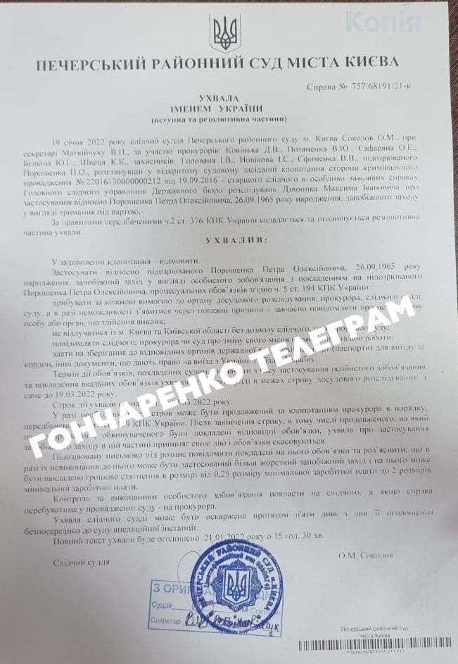 14:17 СУД ОТПУСТИЛ ПОРОШЕНКО ПОД ЛИЧНОЕ ОБЯЗАТЕЛЬСТВО. Это самая легкая мера пресечения из всех возможных.