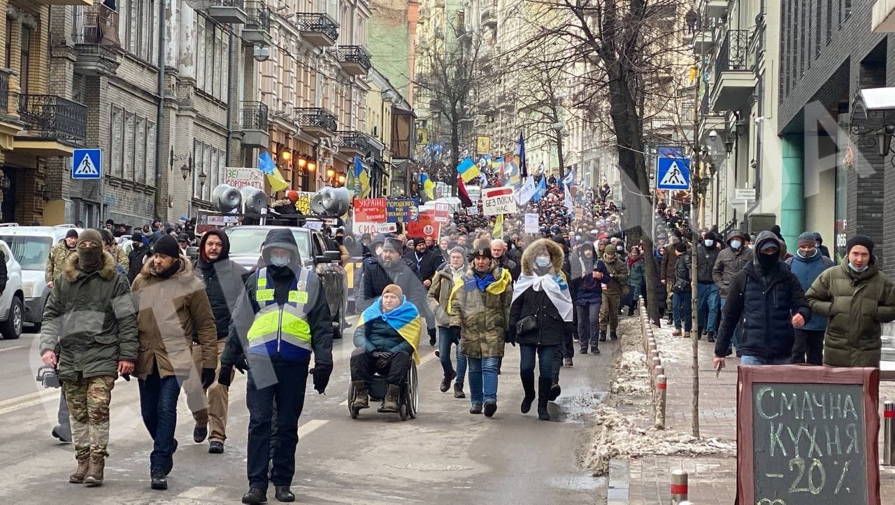 14:59 Сторонники Порошенко формируют колонну и выдвигаются на Банковую.