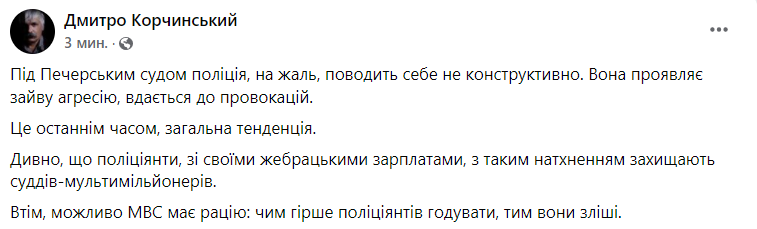Он добавил, что все происходящее происходит по указу Монастырского (министра внутренних дел Дениса Монастырского, Ред.), и сегодня полиция напомнила в своих действиях силовиков Януковича, била ветеранов АТО эбонитовыми палочками, мешая людям согреться и выпить чай.