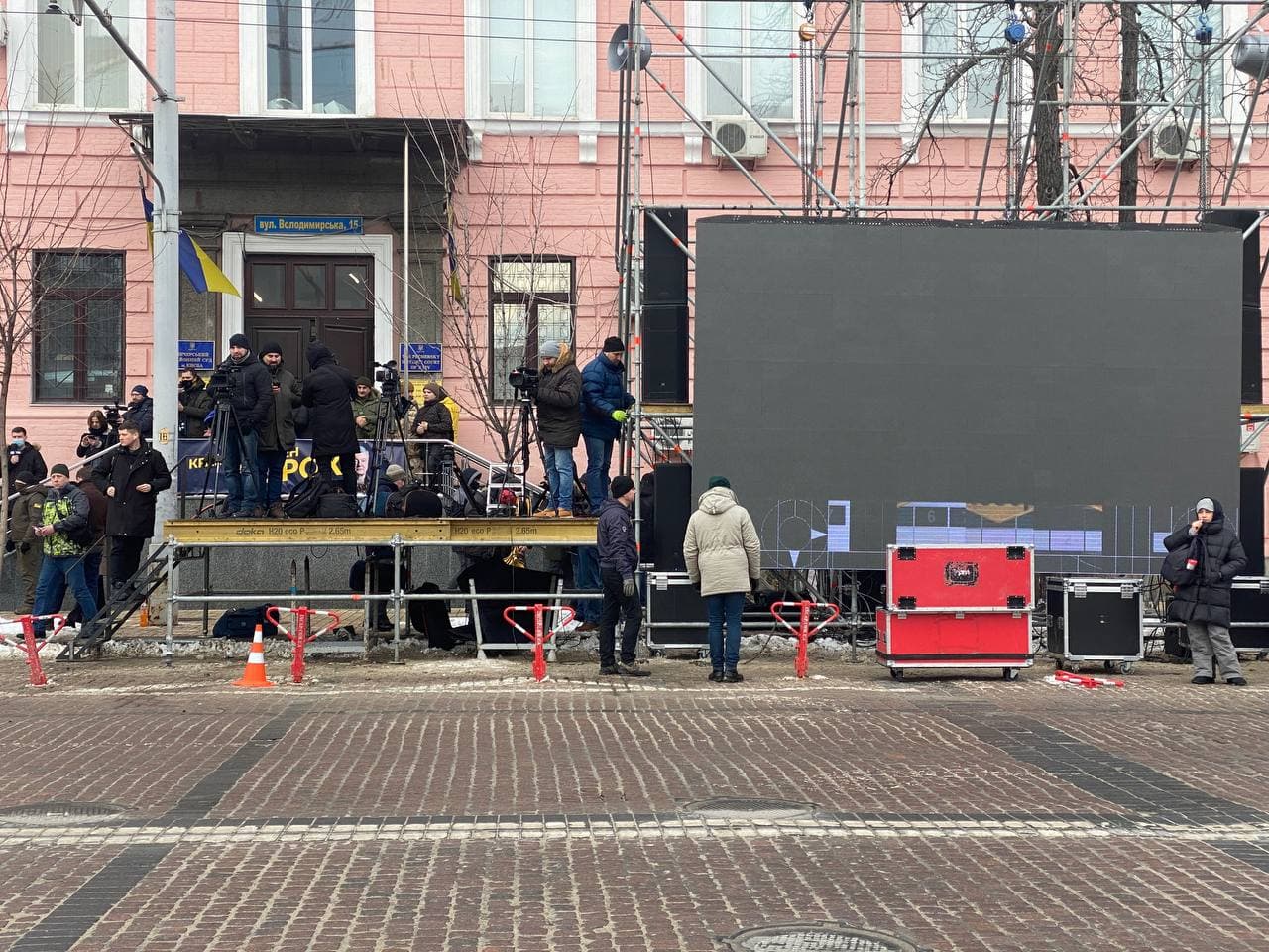 12:19 Под Печерским судом монтируют сцену. То есть сегодняшнее заседание снова пройдет громко.