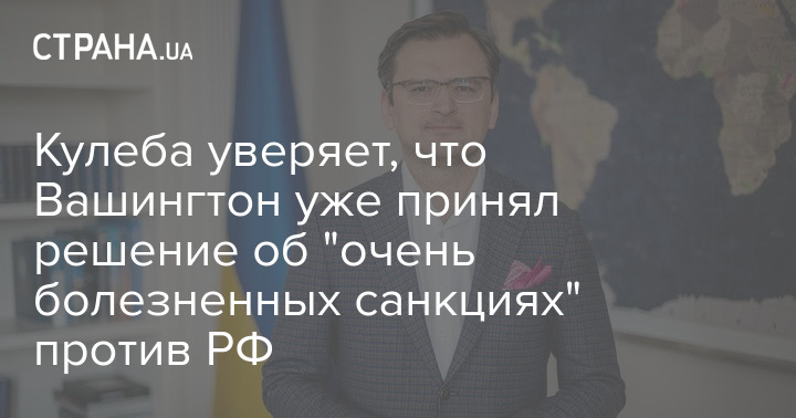 Глава Министерства иностранных дел Украины Дмитрий Кулеба заявил, что США разработали ряд санкционных мер в отношении России, который могут нанести "разрушительный" удар по ее экономике. По его словам, решение о пакете санкций американцы уже приняли.