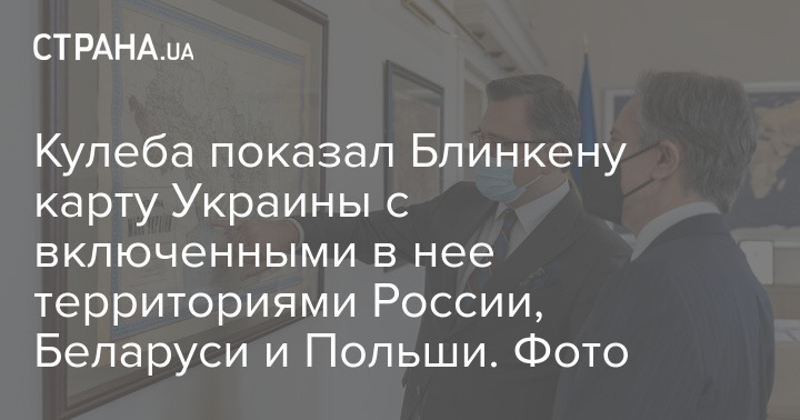 Министр иностранных дел Украины Дмитрий Кулеба показал госсекретарю США Энтони Блинкена в рамках его визита в Украину карту нашей страны с включенными в нее территориями современной России, Беларуси и Польши.