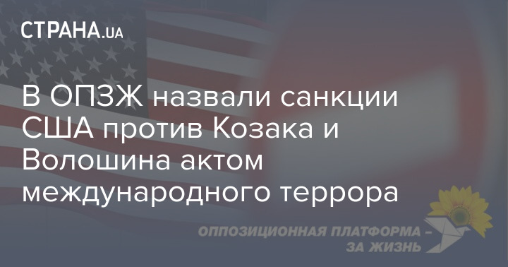 Партия "Оппозиционная платформа - За жизнь" (ОПЗЖ) резко осудила введенные Минфином США санкции в отношении двух ее представителей - народных депутатов Тараса Козака и Олега Волошина.