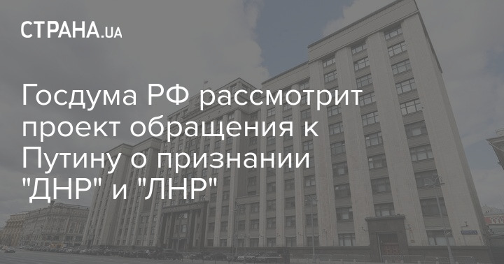 Спикер Госдумы Вячеслав Володин сказал, что российский парламент рассмотрит обращение к президенту РФ Владимиру Путину о признании "ЛДНР", которое внесла фракция КПРФ, на следующей неделе.