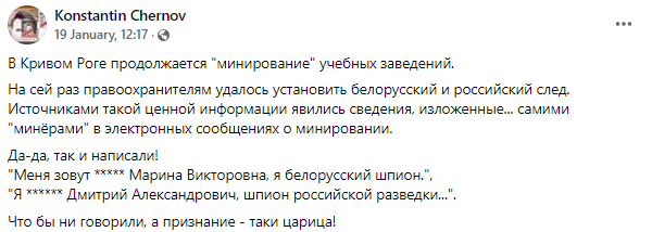 12 января также поступало уведомление о минировании всех школ Черкасс. В учебные заведения направили патрульных и другие батальоны Нацполиции.