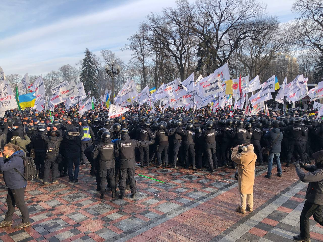 Правоохранители пока сдерживают толпу протестующих предпринимателей, которые пытаются прорваться к Верховной Раде. Все выходы и входы парламента закрыты.