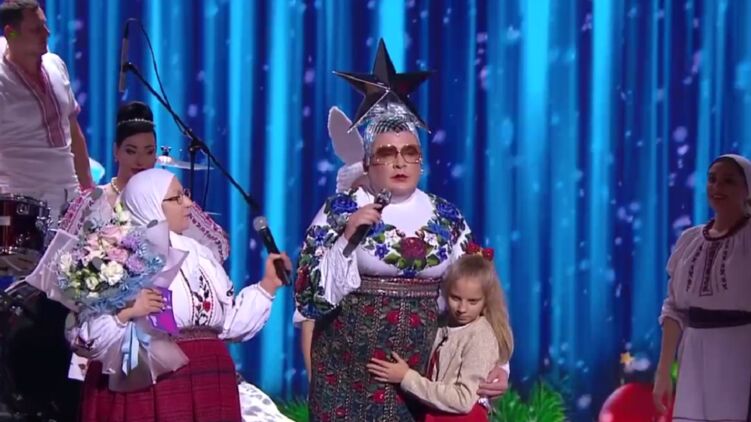 Спела Верка Сердючка после того, как девочка ей подарила цветы. Скриншот из видео