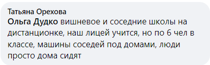 "Школы на дистанционке, наш лицей учится, но по 6 человек в классе, машины соседей под домами, люди просто дома сидят", "Много школ/классов на дистанционном обучении", "Возле дома парковка забита машинами, люди сидят дома, многие болеют, ну и на удаленке работа. Возле поликлиники очереди на тест ковид снова большие. Плюс простуду и грипп не отменяли", - пишут пользователи.