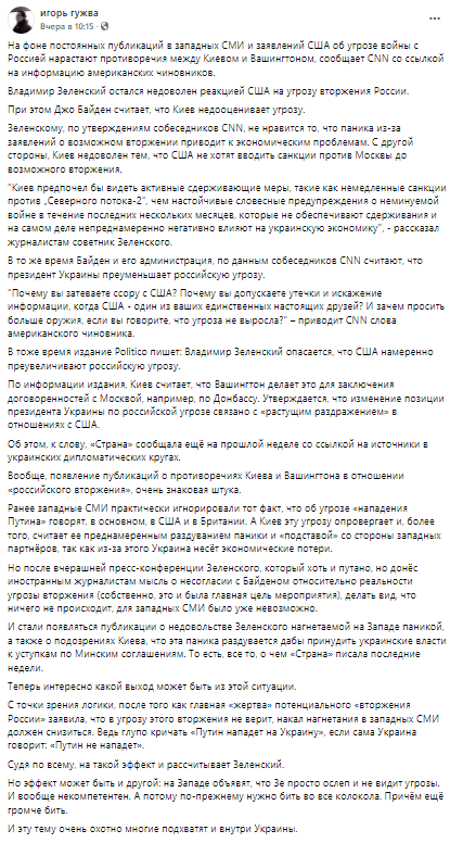 То есть Washington Post намекает, что украинский президент саботирует данные разведки о "вторжении" ради каких-то своекорыстных целей.