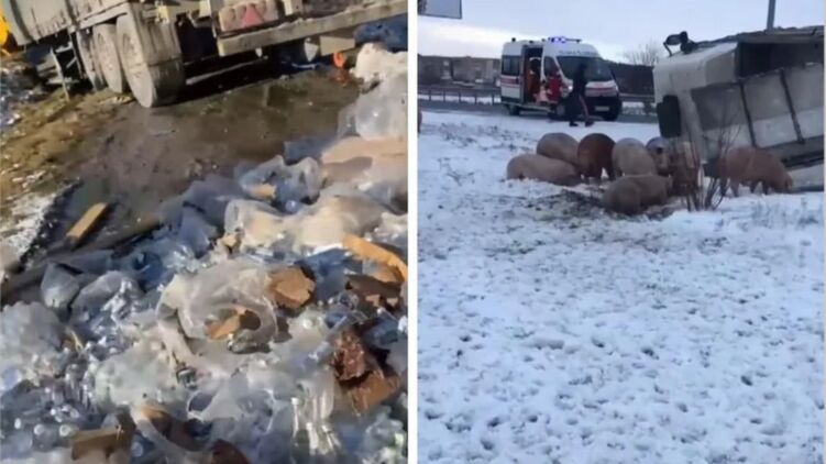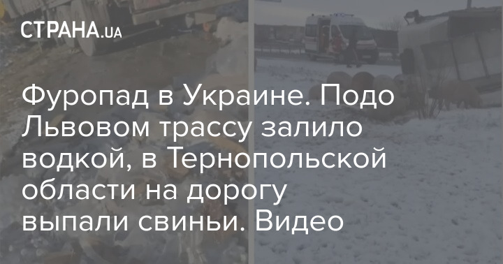 Фуропад в Украине. Подо Львовом трассу залило водкой, в Тернопольской области на дорогу выпали свиньи. Видео