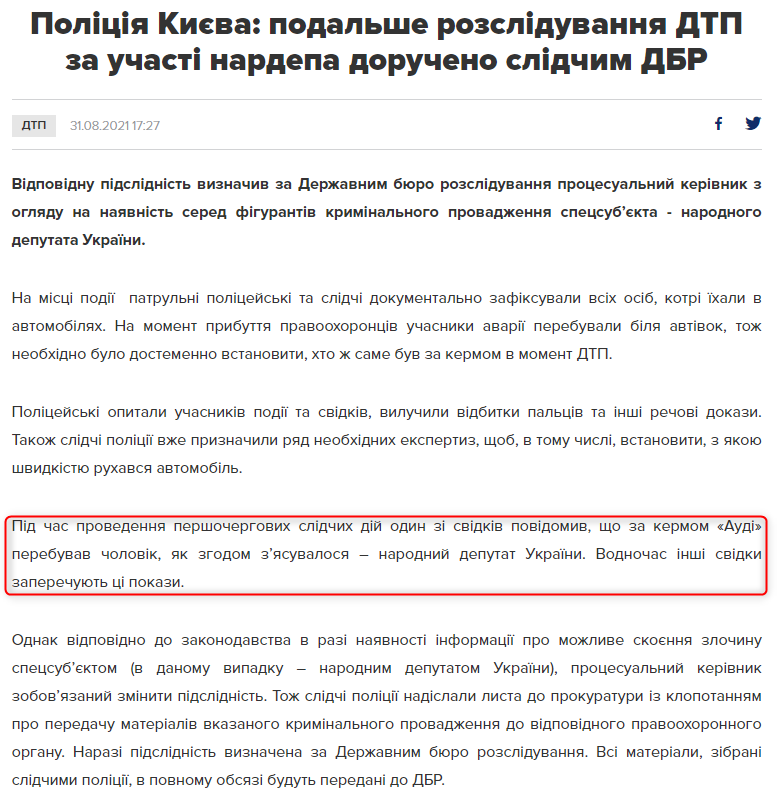 О том, что за рулем "Ауди" был нардеп Александр Трухин, который накануне выпивал, сообщили ряд интернет-СМИ.