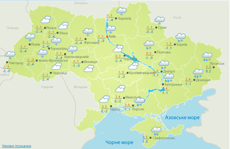 В большинстве западных областей ночью прогнозируется снег, а вот днем уже без осадков. В ночное время ожидаются морозы до -5 градусов, а днем от -2 до +1 градуса. В северных регионах ожидается снег. Температура будет колебаться от -2 до +1 градуса. В Харьковской области ночью прогнозируется мокрый снег, температура от -2 до 0 градусов, а днем без осадков и до +2 градусов.