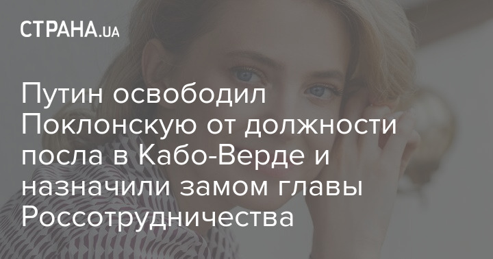 Президент Российской Федерации Владимир Путин освободил Наталью Поклонскую от должности посла России в Кабо-Верде, от которой она отказалась по личным обстоятельствам. Глава государства назначил Поклонскую заместителем главы Россотрудничества.