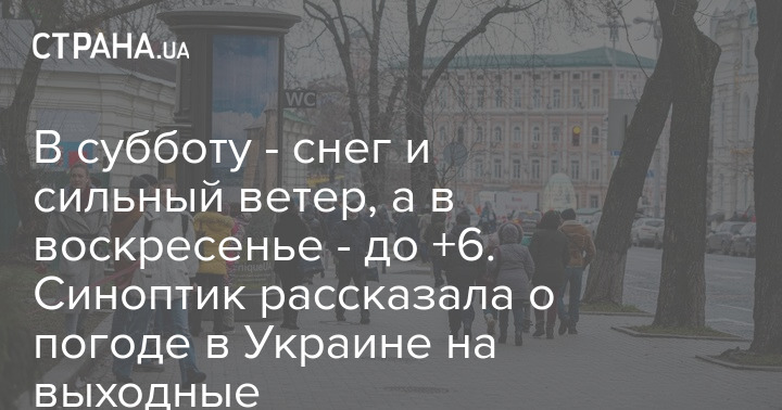 В субботу - снег и сильный ветер, а в воскресенье - до +6. Синоптик рассказала о погоде в Украине на выходные