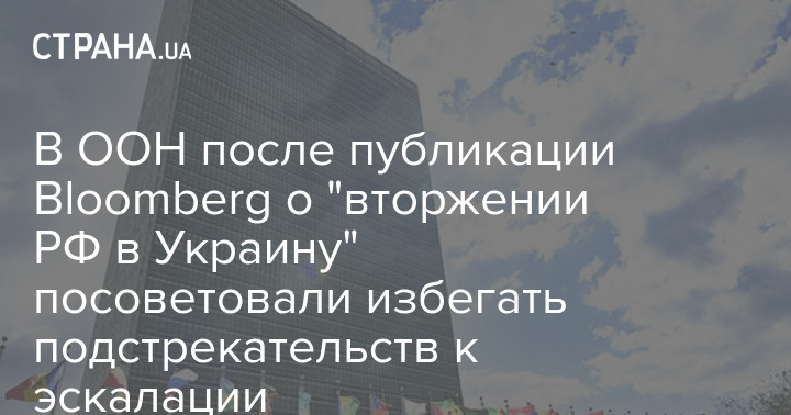 Заместитель официального представителя генсека Организации объединенных наций (ООН) Фархан Хак прокомментировал ошибочную публикацию Bloomberg о начавшемся "вторжении" России в Украину. Он заявил, что всем сторонам в контексте обстановки вокруг Украины следует воздерживаться от действий и риторики, которые могут обострить ситуацию.