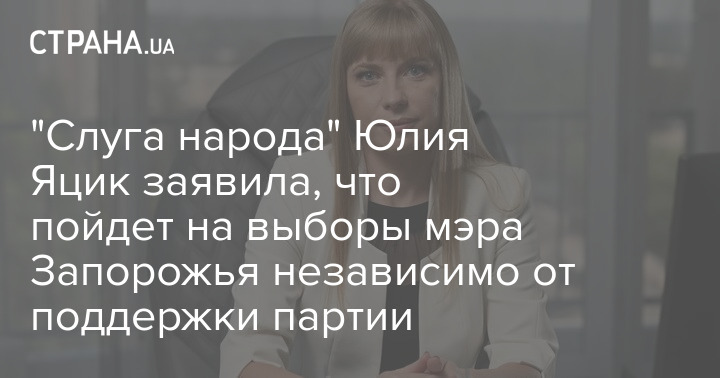 Народный депутат от "Слуги народа" Юлия Яцик объявила, что пойдет на выборы городского головы Запорожья независимо от того, поддержит ли такое решение партия.